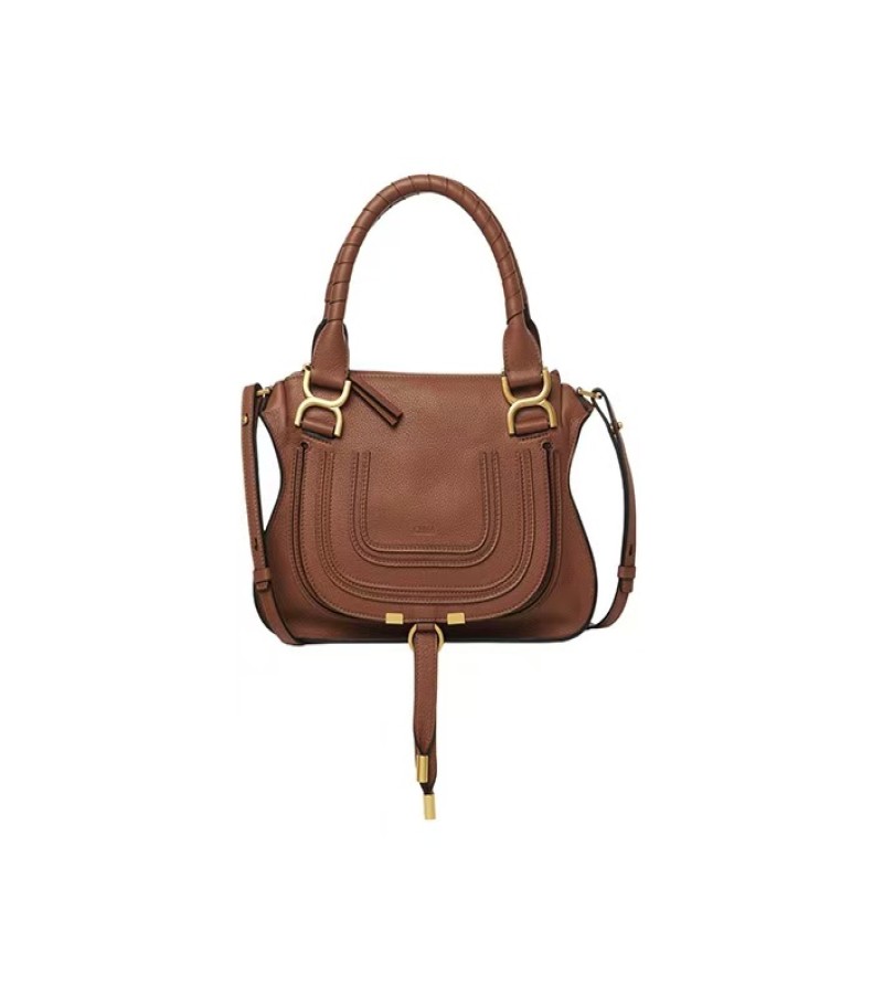 CHLOE MARCIE SMALL DOUBLE CARRY BAG IN BROWN GRAINED LEATHER MASTER QUALITY