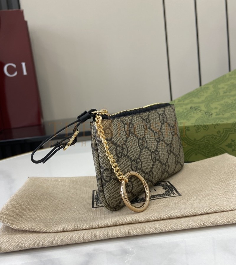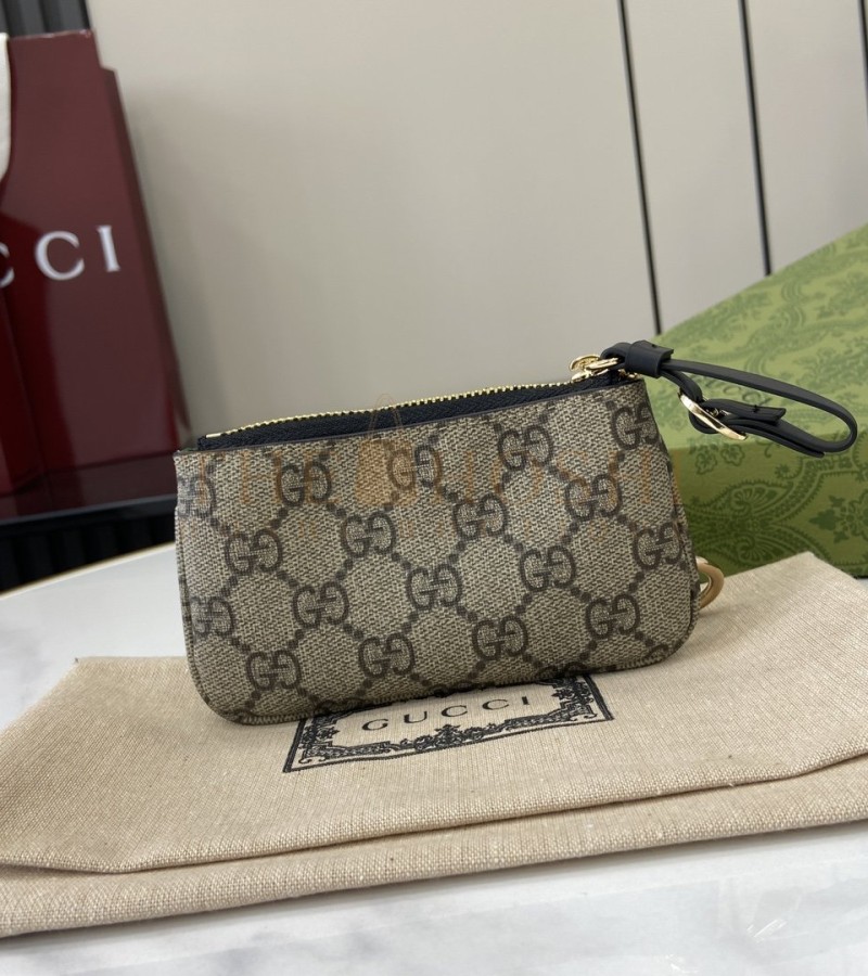 GUCCI GG EMBLEM WRISTLET CARD CASE BEIGE/BROWN CANVAS LEATHER 12X7.5CM MASTER QUALITY