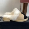 CHANEL SHEARLING LOGO SLIDES WOOL PLATFORM