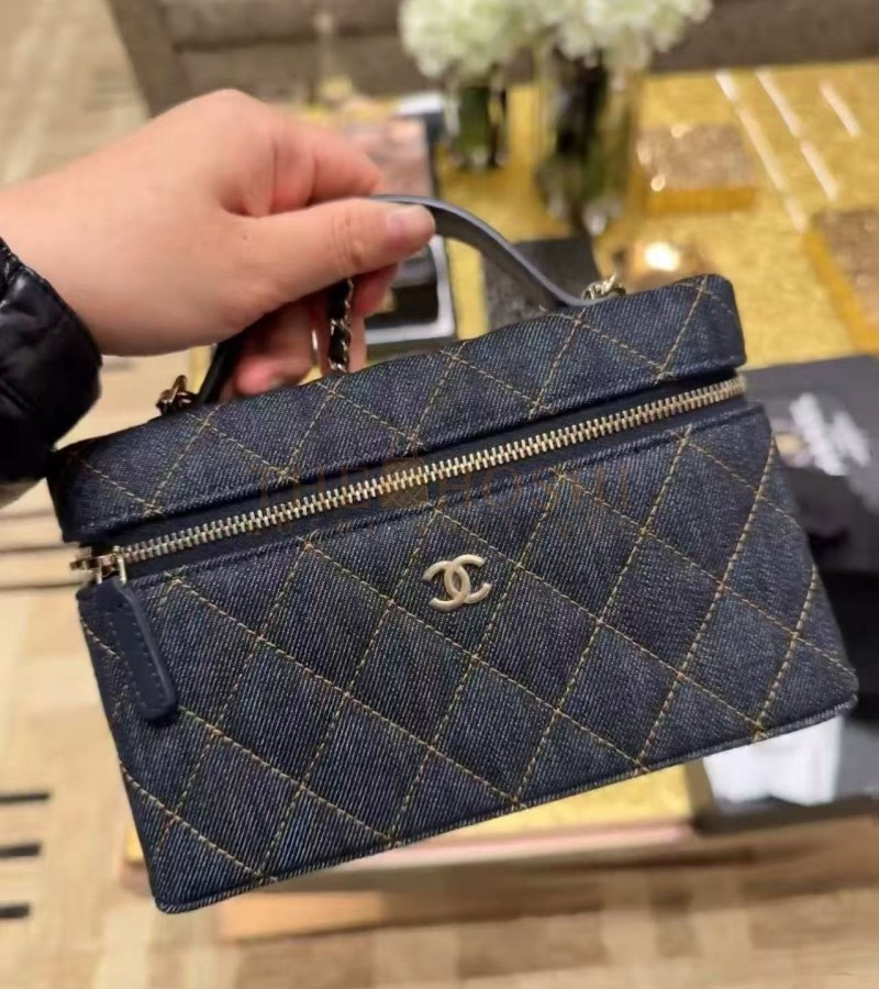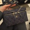 CHANEL 26P DARK DENIM LEATHER FLAP BAG WITH CC LOGO QUILTED DESIGN 19.5*17*5 MASTER QUALITY